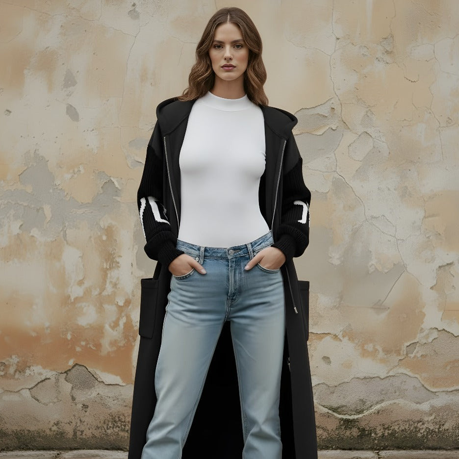 Clara – Women’s Jacket with Knitted Sleeves and Hood